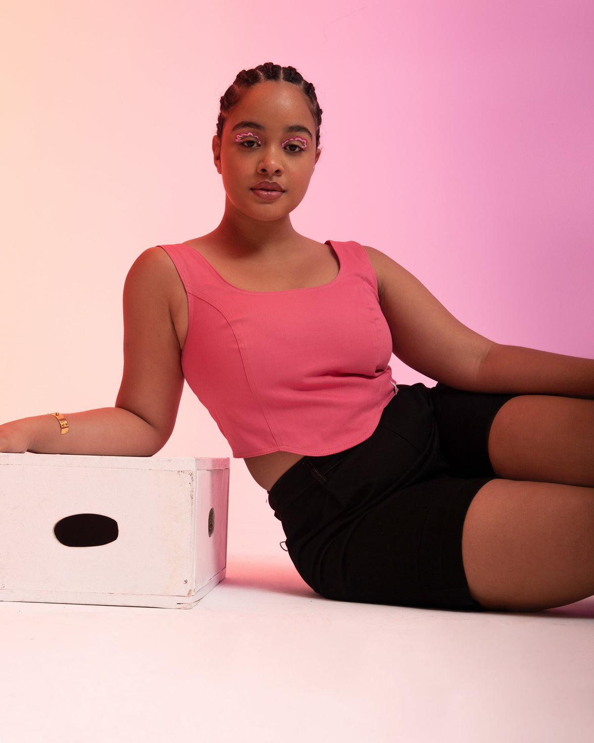 O Top Ashley é uma peça versátil e estilosa inspirada em corsets. Confeccionado em tecido sarja 100%, este top apresenta uma modelagem moderna e prática, com um zíper de nylon discretamente localizado na parte de trás.